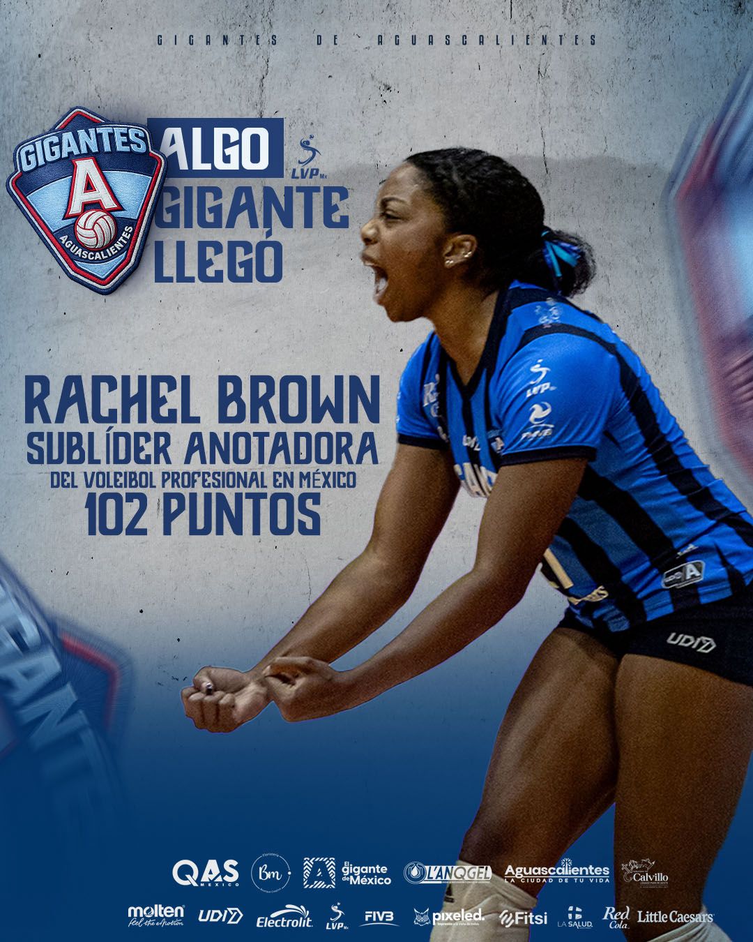 La rematadora estadounidense de Gigantes de Aguascalientes, Rachel Brown es sublíder de puntos de la Liga de Voleibol Profesional (LVP) MX, tras disputarse la tercera jornada de la temporada 2026.…