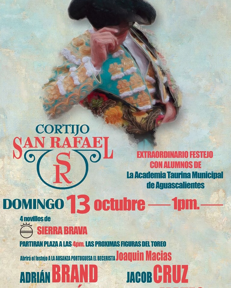 El festejo se realizará en el cortijo San Rafael el domingo 13 de octubre en punto de las 13:00 horas, donde los aspirantes a figuras del toreo, esperan ser acompañados por la gran afición hidrocálida.