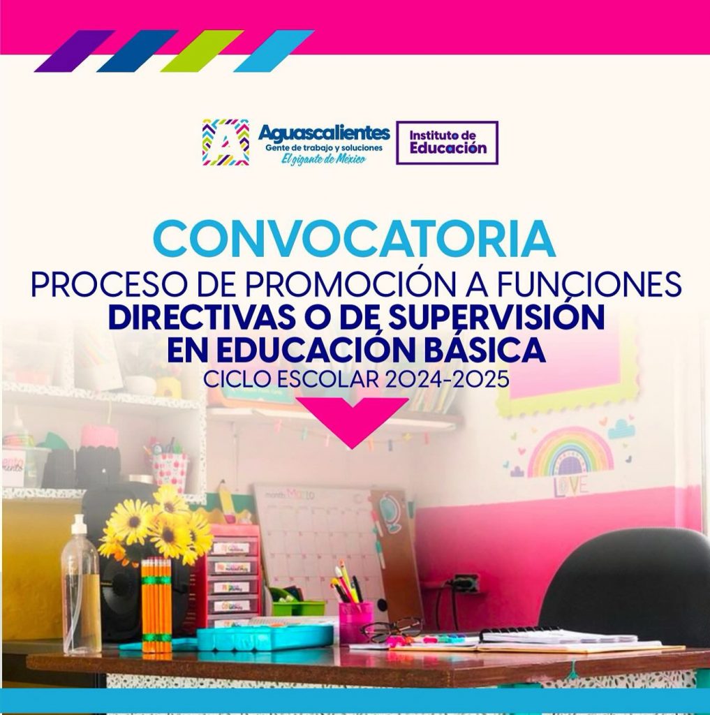 El Instituto de Educación de Aguascalientes (IEA) informa a la comunidad educativa que la Convocatoria del Proceso de Promoción a Funciones Directivas o de Supervisión en Educación Básica para el ciclo escolar 2024-2025 ya ha sido publicada.