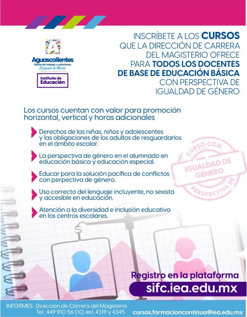 El Instituto de Educación de Aguascalientes (IEA), a través de la Dirección de Carrera del Magisterio, invita a todas las maestras y maestros a inscribirse en los cursos de desarrollo profesional con valor para promoción horizontal, vertical y horas adicionales.