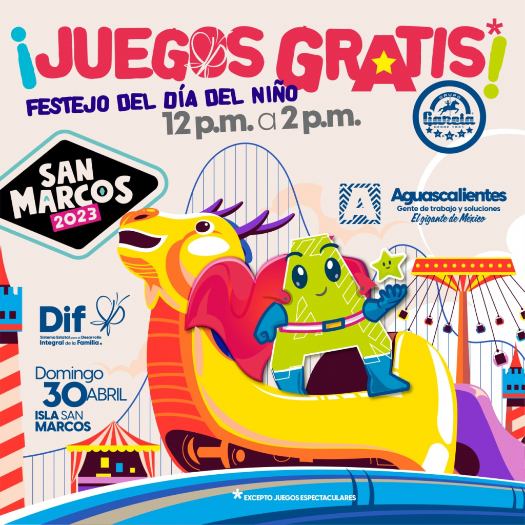 De 12:00 p. m. a 2:00 p. m., el DIF Estatal, en conjunto con Atracciones García, tendrá los juegos mecánicos disponibles de manera gratuita para todas y todos los pequeños.