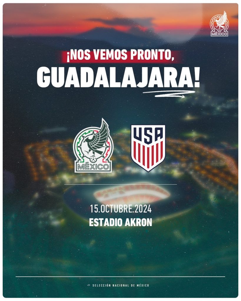 La Selección Mexicana se medirá nuevamente ante su eterno rival, Estados Unidos, en un esperado encuentro amistoso que tendrá lugar el 15 de octubre en el Estadio Akron, casa de las Chivas de Guadalajara. Este enfrentamiento, parte de la próxima Fecha FIFA, marcará el regreso del Tricolor a Guadalajara tras una ausencia de 14 años.