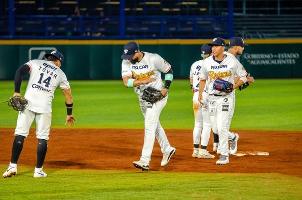 Tigres anotó dos carreras en la sexta entrada, Alcides Escobar conecta doblete y envía a Roberto Caro con la primera y luego anota con imparable de David Rodríguez. Cinco carreras más anotan los Rieleros en el sexto episodio, Ángel Reyes conectó su cuarto imparable de la noche, Cabrera recibe base, O’Conner se embasa en error y Marco Jaime produce dos con doblete. Tovar acepta pasaporte, Ríos impulsa una y Andretty Cordero con doble remolca dos para poner 15-2 la pizarra.