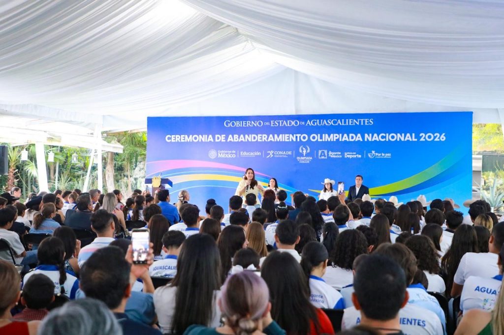 Con gran entusiasmo, la gobernadora de Aguascalientes, Tere Jiménez, encabezó la ceremonia de abanderamiento de la delegación que representará al estado en la Olimpiada Nacional Conade 2026, la cual se incrementó a 1,100 atletas, entrenadores y personal de apoyo, lo que representa un aumento de más del 41 por ciento respecto al año pasado.