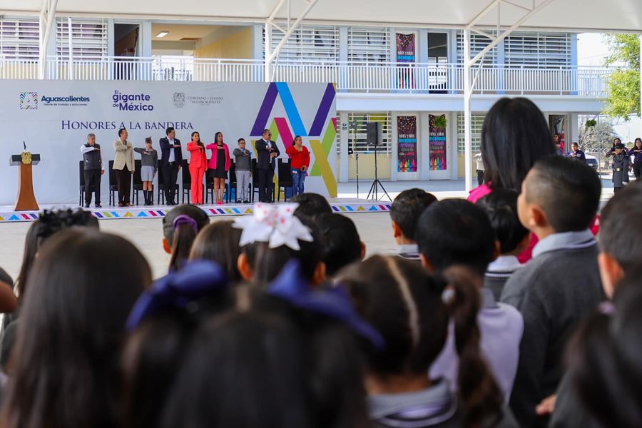 La gobernadora de Aguascalientes, Tere Jiménez, entregó hoy nueva infraestructura educativa a las y los alumnos de la escuela primaria “Rafael Francisco Aguilar Lomelí”, ubicada en el fraccionamiento Hacienda San Marcos, al sur del municipio capital, en coordinación con el Instituto de Educación de Aguascalientes, se refrenda el compromiso de una educación de excelencia con infraestructura de calidad.