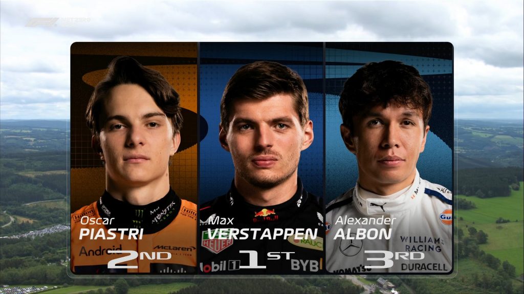 Oscar Piastri, de McLaren, fue el segundo más rápido, a 0s531 de Verstappen, mientras que Alex Albon sorprendió al colocar a Williams en la tercera posición. Los Mercedes de George Russell y Lewis Hamilton ocuparon el cuarto y quinto lugar, respectivamente. Charles Leclerc fue sexto para Ferrari, seguido de Sergio «Checo» Pérez, quien se mostró incómodo con su coche y quedó a casi un segundo de su compañero de equipo.