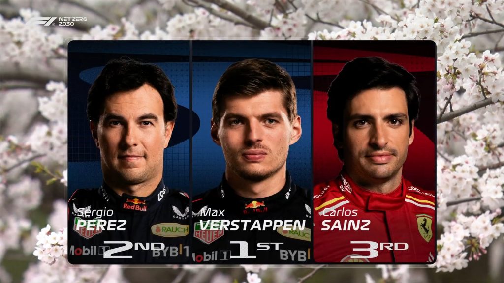 Max Verstappen lideró la primera práctica (FP1) del Gran Premio de Japón, seguido de cerca por su compañero de equipo, Sergio «Checo» Pérez, en un dominante inicio para Red Bull Racing. Verstappen registró el tiempo más rápido con 1m30s056, con Pérez a solo 0s181 detrás, mientras que Carlos Sainz de Ferrari se colocó tercero.