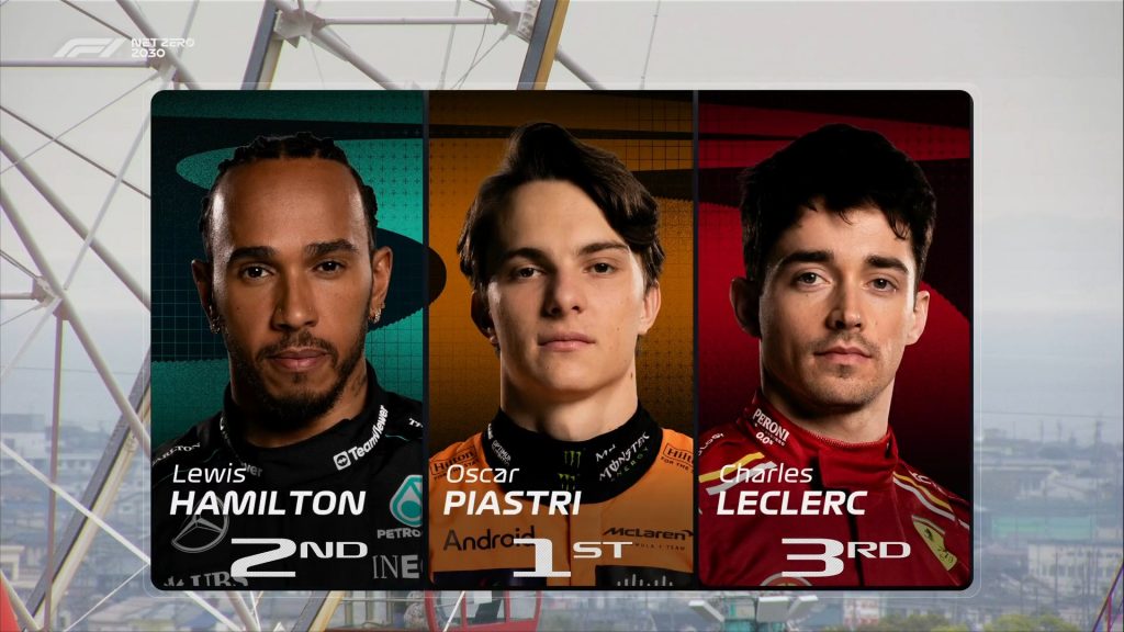 La segunda práctica (FP2) presentó desafíos adicionales debido a la lluvia persistente, que limitó significativamente el tiempo en pista para los equipos. Oscar Piastri de McLaren aprovechó las condiciones mejoradas hacia el final de la sesión para liderar con un tiempo de 1m34.725s, seguido por Lewis Hamilton y Charles Leclerc, quienes mostraron destreza bajo la lluvia.